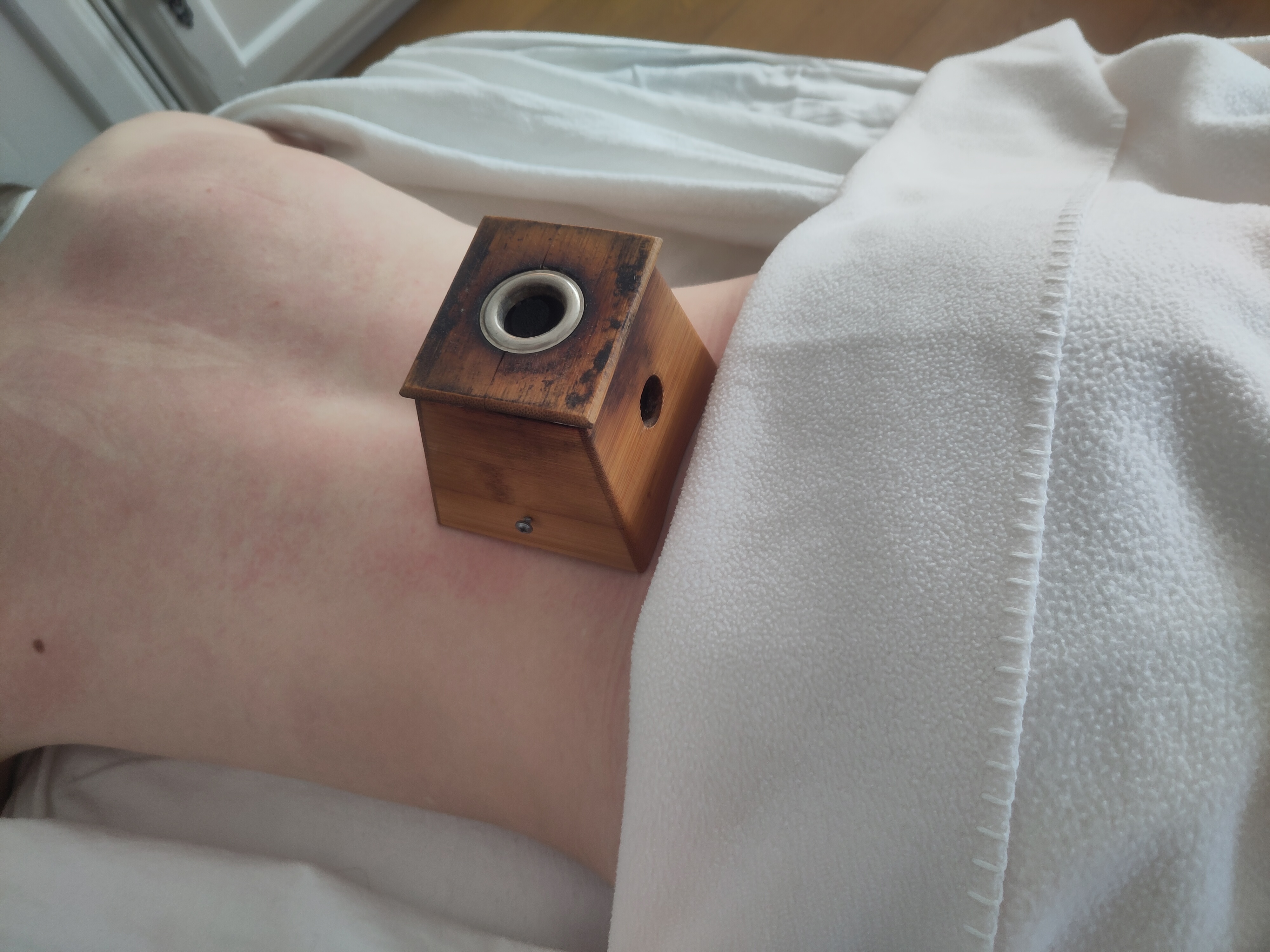 - moxibustion (oder kurz moxa) ist eine wärmeanwendung mittels getrocknetem, gepressten und vorgekohlten beifusskraut.
